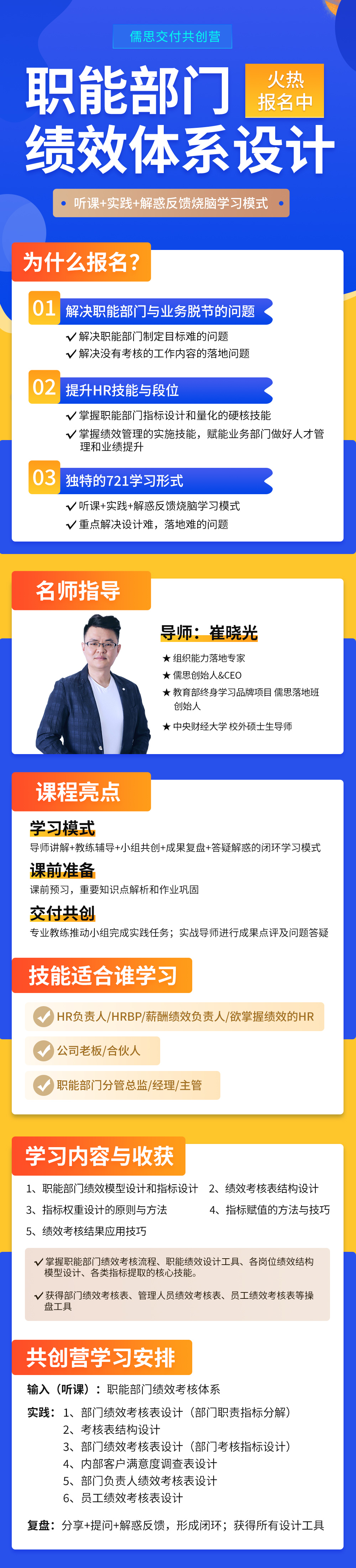 A:共创营采用”721”学习方式(10%理论学习、70%项目实践、20%复盘解惑),也是输入、实践、复盘的闭环式学习,输入,是通过知识学习形成理论基础;实践,是通过项目实践学会逻辑、方法、工具的应用;复盘,是通过分享点评、答疑解惑,打通逻辑形成闭环。